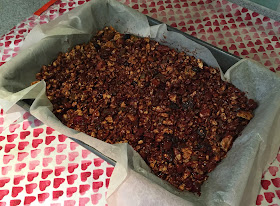 Pour the mixture into the lined baking tray and spread out into an even layer.